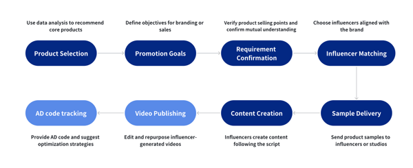 Our U.S.-based studio is dedicated to delivering outstanding solutions, with a focus on influencer recruitment, professional video production, and smart product selection guided by the latest data insights.